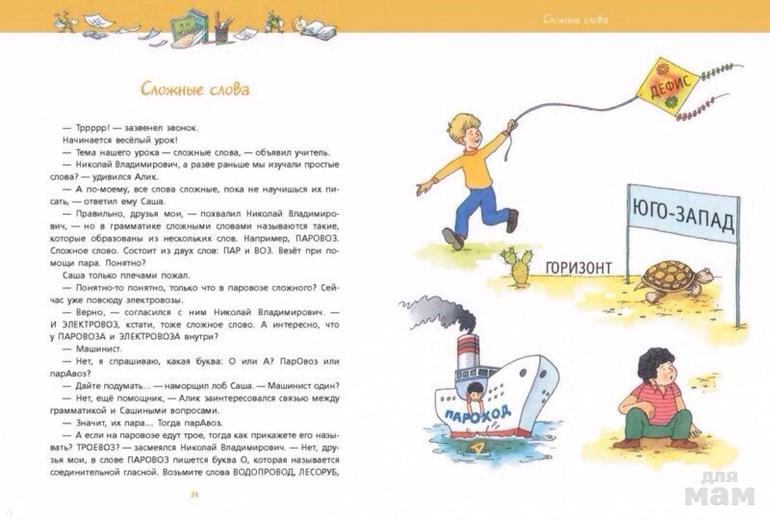 В этом весёлом учебнике по русскому языку собраны самые коварные правила, которые изучают со второго класса, но до конца не выучивают, пожалуй, никогда. Книга написана Аркадием Хайтом и Александром Левенбуком на основе выпусков передачи "Радионяня", которая выходила на советском радио в 1970-1980-х годах. Обаятельные герои, забавные диалоги и смешные песенки помогают запоминать сложные правила быстро и легко. По отзывам слушателей, уроки "Радионяни" были в пять раз эффективней, чем школьные уроки грамматики.