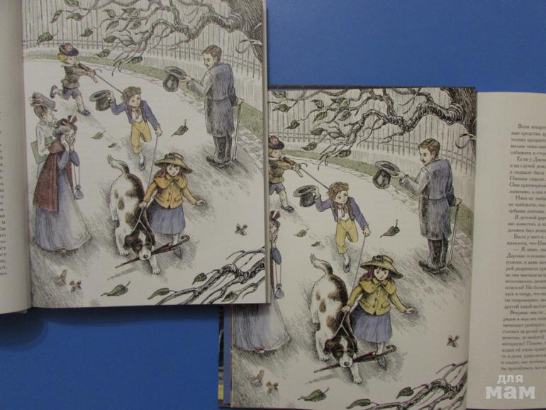Иллюстрации в книге делятся на две части: когда дети еще дома и когда они в полете и на острове с Питером.