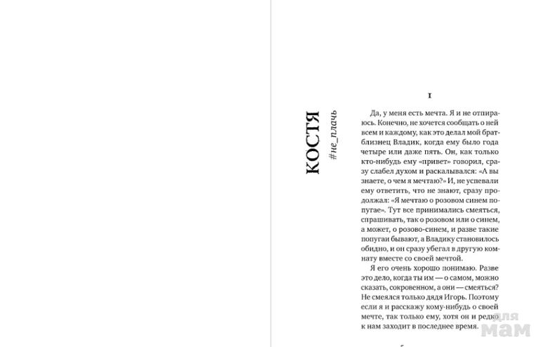 "Я тебя знаю. Я видел твое лицо. Это же ты ведешь ту страницу?" Слова соседа стали для Влада полной неожиданностью. Он увлекается видеосъемкой, отлично готовит, но никаких страниц не ведет. Набрал хештег #не_плачь - и правда: кто-то, с его фоткой на аватаре, администрирует группу в соцсети - на тему, порядком доставшую за последнее время. А пару дней спустя он получил письмо с темой "Тебе надо знать". В письме - скан его детской фотографии, и на ней… два Влада. И подпись: "Костик и Владик".
