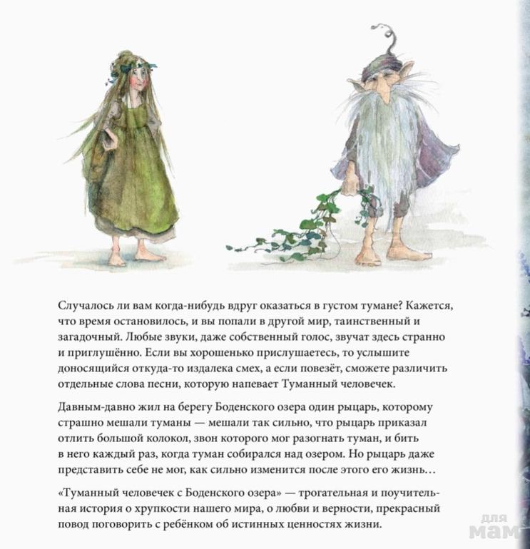 «Туманный человечек с Боденского озера» — трогательная и поучительная история о хрупкости нашего мира, о любви и верности, прекрасный повод поговорить с ребёнком об истинных ценностях жизни.