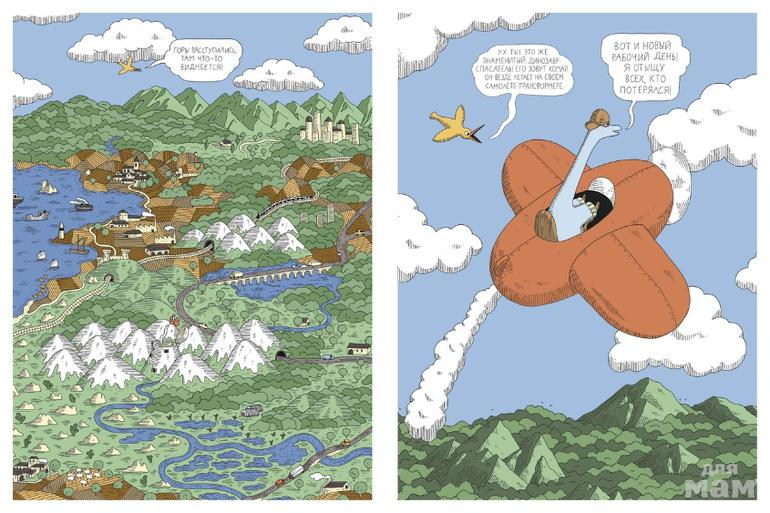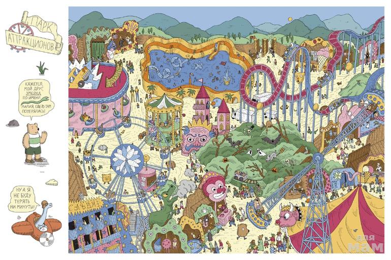 Игра-путешествие, в которой читателю предстоит составить компанию знаменитому динозавру-спасателю по имени Комар. На борту своего самолета-трансформера Комар отправляется в путь и находит пропавших людей, животных и потерянные предметы. Ни переполненный музей, ни девственный лес, ни подземный город с тысячей и одной пещерой не ускользнут от его орлиного глаза! Особенно, если ему поможет читатель! Полные мельчайших деталей иллюстрации Софи Геррив будут с интересом рассматривать и дети, и взрослые: художница спрятала среди персонажей и пейзажей множество остроумных отсылок к известным героям и символам из мира кино и литературы. Но вот, вы добрались до конца книги... И выясняется, что не все тайны раскрыты! Комар-Спасатель с жужжанием спешит на подвиги, а мы начинаем снова рассматривать книгу с еще большим интересом!