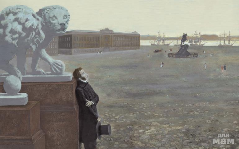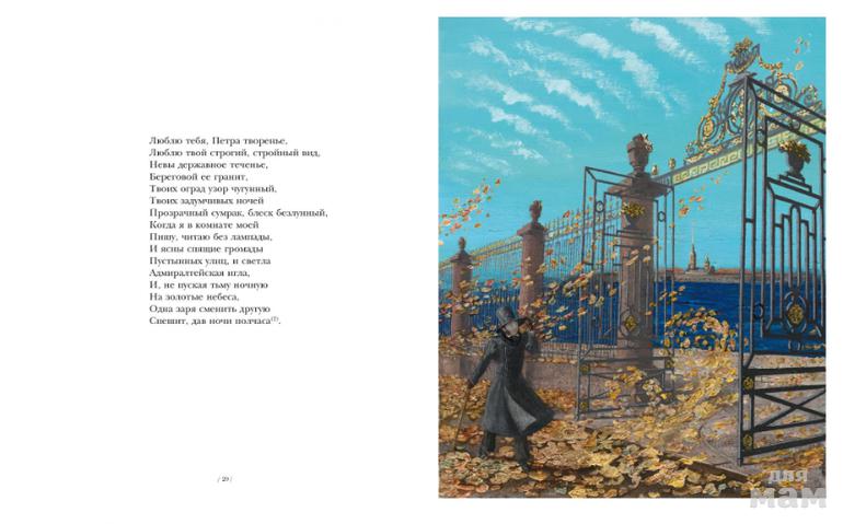 Эта книга — авторский проект замечательного художника Михаила Бычкова, в иллюстрациях которого эпизоды пушкинской поэмы и пушкинский Петербург буквально оживают. «Я не ставил перед собой задачу проиллюстрировать „Медный всадник“. Мне хотелось создать живописный эквивалент поэмы — сложный, многоуровневый, как и она сама». Поэма «Медный всадник», одно из самых глубоких и совершенных произведений А.С. Пушкина, написана в Болдине в октябре 1833 года. В ней изображено масштабное наводнение в Петербурге 7 ноября 1824 года. Назвав свое произведение «петербургской повестью», Пушкин открыл в русской литературе тему большого города. Трагическое событие, сломавшее привычный ход жизни, оборачивается настоящей фантасмагорией, закономерностью, связанной с особенной судьбой Петербурга в русской истории и культуре. При жизни поэта было опубликовано лишь начало «Медного всадника»: «высочайший цензор» Николай I потребовал внести в поэму изменения, на которые Пушкин не согласился пойти.