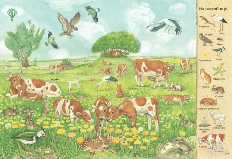 В этой книге вы встретите более 360 "героев" - растений и насекомых, птиц и зверей, рыб и грибов, которые живут на нашей планете. Являясь по сути виммельбухом, это не просто "книга-бродилка-гляделка", это еще и энциклопедия, и определитель животных и растений. Информация в книге расширяет кругозор ребенка, развивает его внимательность и память, будит воображение, позволяет познакомиться с временами года и особенностями обитателей лесов, полей, лугов, рек, побывать на всех континентах и заглянуть под воду во всех океанах и морях. Шесть тематических глав завершаются страницами с подсказками и советами для родителей, как более интересно и результативно заниматься с ребенком. Указатель в конце книги из более 360 названий позволяет быстро ориентироваться на красочных страницах.