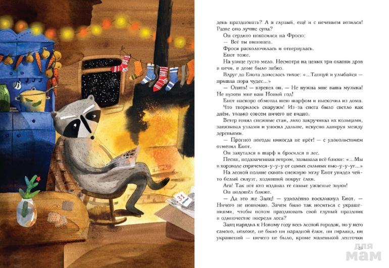 Когда маленький лесной городок припушило первым снегом — всё изменилось. Пришла пора готовиться к Новому году! Доставать с антре солей новогодние украшения, слушать праздничные песни, готовить подарки и, самое главное, дарить друг другу радостное настроение! Но что делать, если твой сосед — вечно хмурый Енот, который не видит в празднике никакого проку? Как подарить хорошее настроение тому, кто не хочет принимать подарки?..