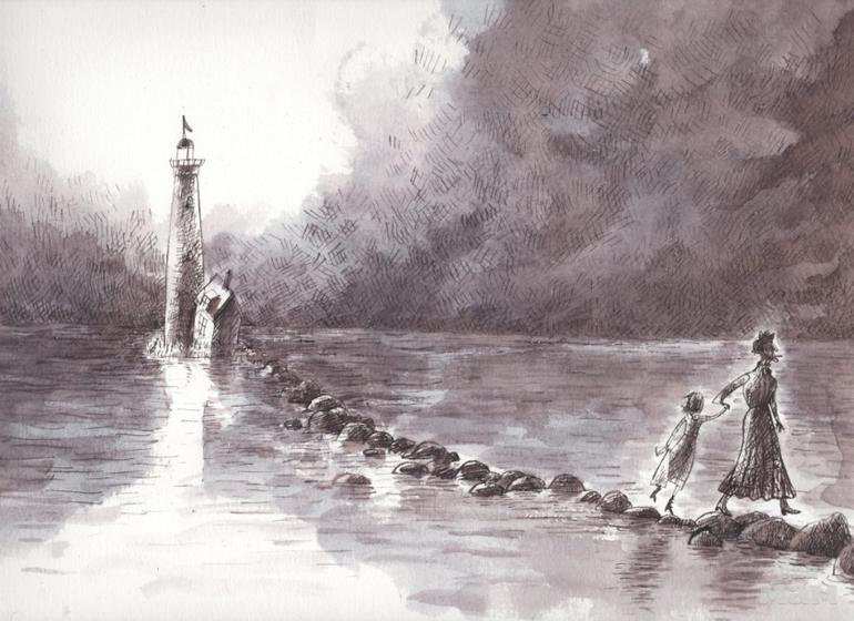 Эта история — о море. О таинственных морских созданиях и свирепых пиратах. О Чёрном доме, в котором, по слухам, живёт чудовище. О маяке — высокой серой башне, что стоит на маленьком полуострове. О мечтательнице Эмилии, по прозвищу Лампёшка, дочери смотрителя маяка, которая каждый день взбирается по крутой винтовой лестнице, чтобы зажечь огонь. Об одном злополучном вечере, с которого всё и начинается, когда на море бушует шторм, а у Лампёшки, как назло, закончились спички…