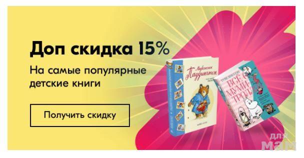 Новый промокод ОзонСкидка по промокод KIDS15 на самые популярные детские книги, при покупке от 1000р, по 9 сентября 2019