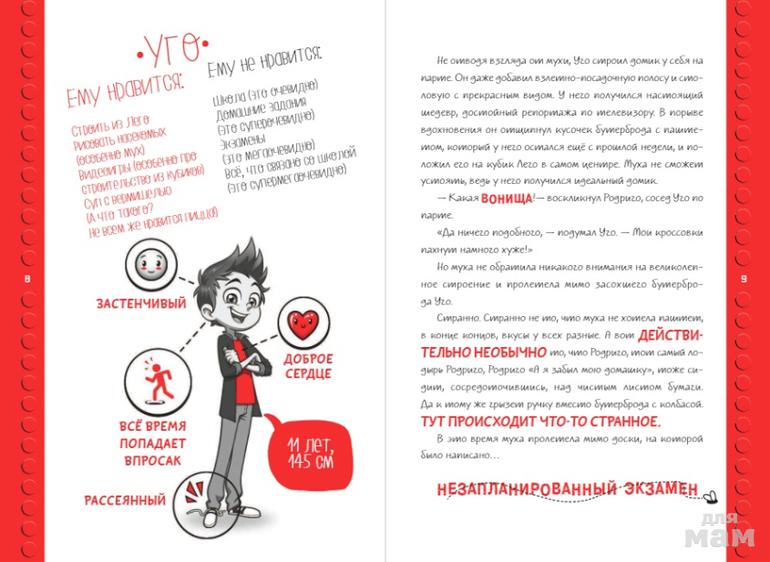 Веселый и оригинальный комикс для детей 12 лет и старше расскажет историю мальчика Уго, его друзей и их забавного умного робота, обладающего очень человеческими чертами характера. Герои путешествуют во времени, оказываются в сложных и, казалось бы, безвыходных ситуациях, но знание робототехники и программирования всегда помогает им найти решение. Страница за страницей, вместе с героями книги, читатели узнают новые интересные факты о роботах и знакомятся с основами информатики, робототехники и программирования.
