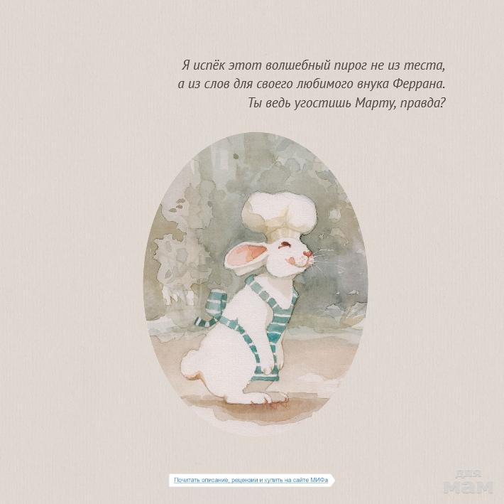 Однажды утром в одном лесу крольчонок просыпается... голодным. Всю ночь ему снился пышный и вкусный пирог! А что, если приготовить такой пирог самому? Для этого крольчонку потребуются мука, одно яйцо, мед, анис... Но где же это все раздобыть?