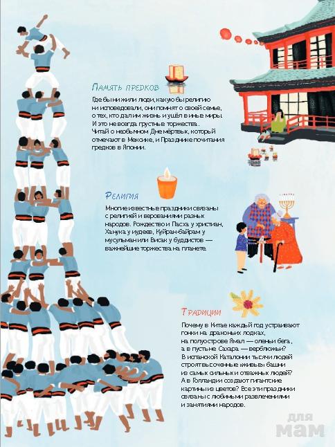 На каждом развороте этой книги тебя ожидает знакомство с новым необычным праздником из разных уголков нашей планеты. Ты сможешь прокатиться на лодке, которая так похожа на самого настоящего дракона, устроить томатный бой или взобраться на верхушку "живой башни".