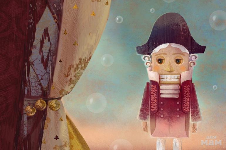 В рождественский вечер Фриц и Клара получают от родителей подарки: кукол, деревянного коня, игрушечных гусар, крошечную посуду, книжки с картинками. Крёстный Дроссельмайер преподносит им миниатюрный замок с золотыми башнями, по залам которого передвигаются дамы и кавалеры. Дети знакомятся с ещё одной игрушкой — маленьким уродливым человечком по имени Щелкунчик, умеющим разгрызать твёрдые орехи. Так начинается знаменитая повесть-сказка Эрнста Теодора Амадея Гофмана "Щелкунчик", которая впервые была опубликована в 1816 году.