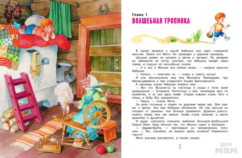 Приехать на каникулы к бабушке в деревню и оказаться в сказочном царстве, где живут Змей Горыныч, Кощей Бессмертный, Кикимора болотная, кот Баюн и другая сказочная малосимпатичная публика,- такое не каждому мальчику понравится. А вот Сидорову Мите всё это очень понравилось. Потому что он не только увидел то, о чём читал в книгах, но и сумел помочь добрым сказочным героям: Василисе Премудрой, Дядюшке Домовому и замечательному царю Макару. Без него они бы пропали.