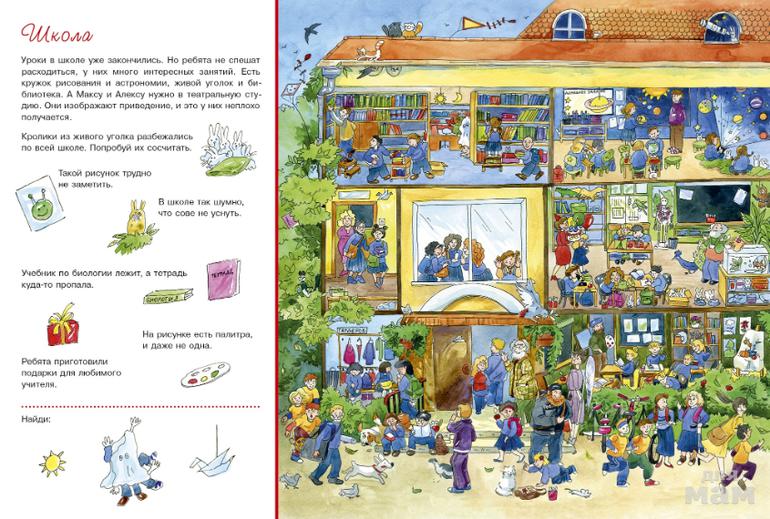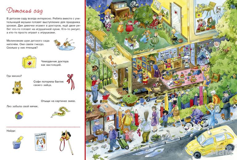 Рассматривайте картинки, выполняйте вместе с детьми задания по поиску персонажей и мелких деталей на каждом развороте, находите «шутки» художника, их в книге спрятано огромное множество!