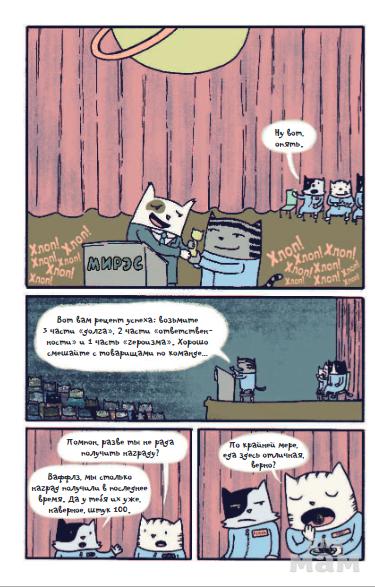 Автор и иллюстратор этого графического романа создал удивительный мир, в котором живут исключительно кошки. На страницах книги вас ждёт потрясающий, добрый юмор, научные исследования, и, конечно, достаточно бутербродов с тунцом для всех!