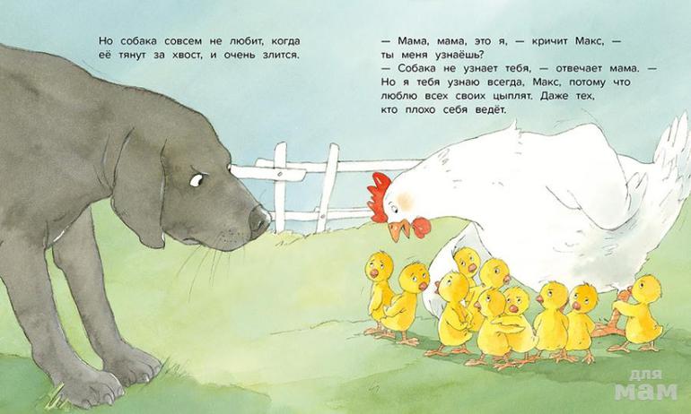 Макс — один из десяти птенцов, которые появились у мамы-наседки. Все они одинаковые: маленькие, жёлтые и пушистые. Максу становится интересно — как же мама отличит его от остальных птенцов? Может быть, если он будет плохо себя вести, это привлечёт её внимание? И Макс начинает свой праздник непослушания. Получится ли у него? И как поступит мама?