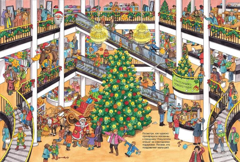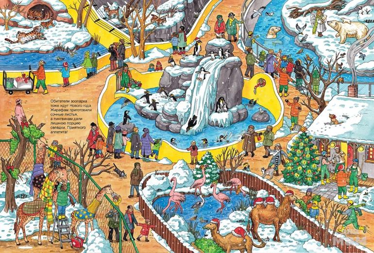 Новогодний виммельбух с яркими, забавными иллюстрациями со множеством интересных и неожиданных деталей непременно понравится детям. Ведь его можно разглядывать бесконечно долго и каждый раз находить что-то новое! Веселое и полезное развлечение на все зимние праздники!