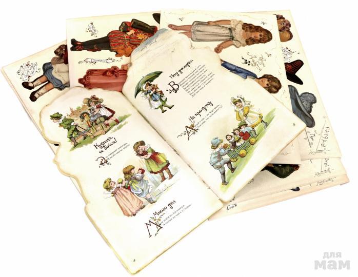 – книжка «Кукла приехала» – воспроизводит реальную книжку, изданную в Лондоне в конце XIX века, со стихами в переводе Марины Бородицкой;
