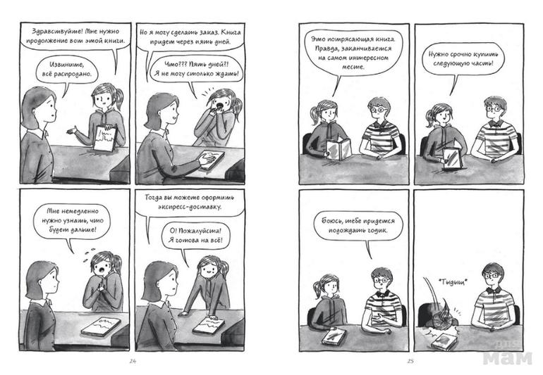 Он рассказывает о тех, для кого книги — всё на свете. Почти в каждом стрипе можно узнать себя и от души посмеяться. А тонкие и стильные иллюстрации Дебби Танг сделают чтение более уютным, особенно, если рядом будет плед и чашечка чая или кофе.