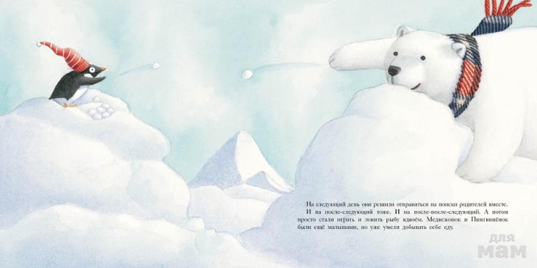 Медвежонок и Пингвинёнок потеряли родителей во время страшного шторма. Но хорошо, что они нашли друг друга! Вместе можно преодолеть все невзгоды. Друзья с любопытством исследуют огромный мир.