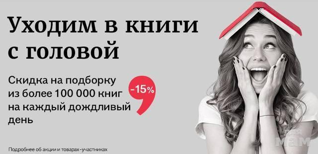 Скидка 15% на подборку из более 100 000 книг на каждый дождливый день! Акция проходит в интернет-магазине по 10 октября 2019 года.