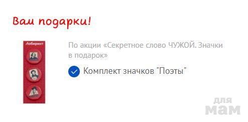 набор значков в подарок к заказу от 1000р по любому одному из промокодов: