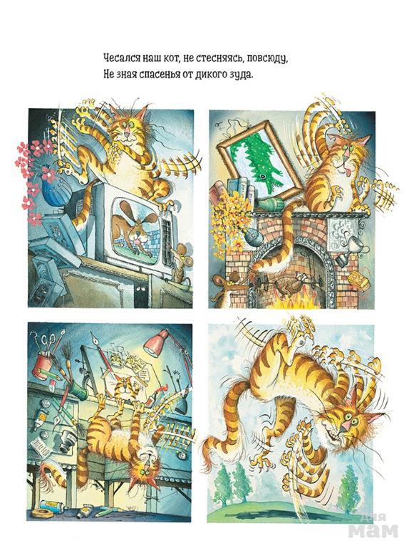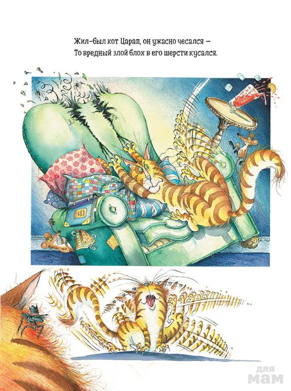 Книга про кота Царапа непременно понравится и юным, и взрослым читателям! Созданная в стиле модного жанра комикса стихотворная история повествует об отчаянном коте, неуловимой блохе, изводящей его день и ночь, а также о царе зверей – Льве, который неожиданно приходит на помощь Царапу.
