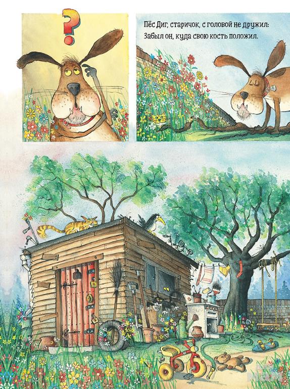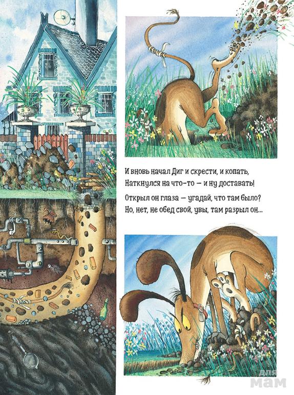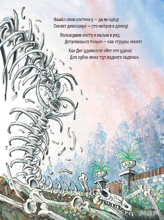 Книга про незадачливого пса Дига непременно понравится и юным, и взрослым читателям! Созданная в стиле модного жанра комикса стихотворная история повествует о Диге, который отчаянно ищет потерянную кость. Он копает всё глубже и глубже и обнаруживает под землёй совершенно невероятные вещи. Но не находит ни крошки съестного! Добудет ли Диг что-нибудь на ужин?