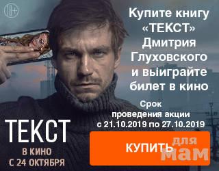 Купите электронную книгу «Текст» Дмитрия Глуховского, заполните форму, ссылка на которую размещена на последней странице, и получите шанс выиграть бесплатный билет на одноименный фильм. Победители будут выбраны случайным образом 31 октября 2019 года среди всех заполнивших форму.
