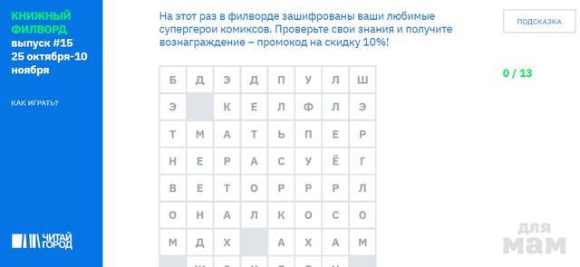 Новый выпуск Книжного филлворда в Читай Городе!по 10 ноября 2019 разгадайте головоломку по мотивам суперкомиксов и получите купон на 10%!-