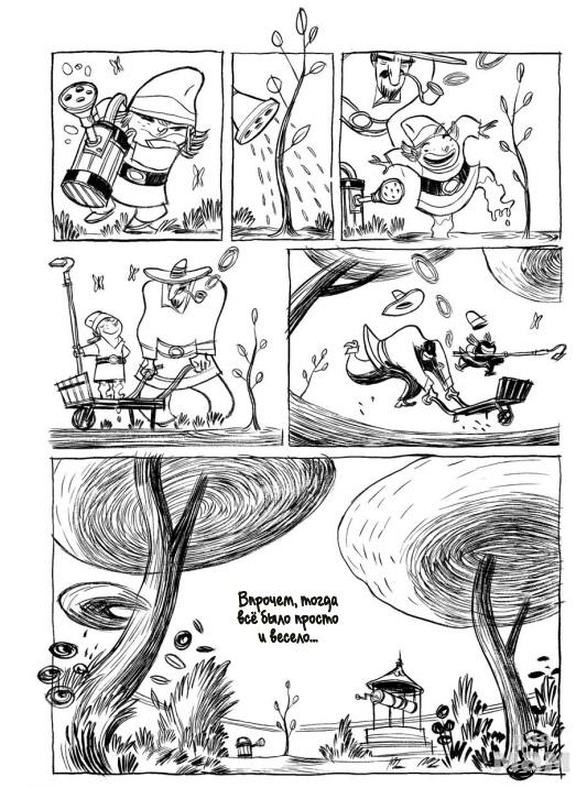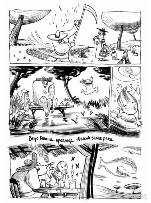 Так начинается графический роман «Три тени». В его основе лежит реальная история друзей автора. Это щемящая душу, метафоричная и очень деликатная история о потере ребенка, но с по-настоящему светлой, мудрой и доброй концовкой. Сириль Педроза показывает читателю эмоции и переживания, которые могут испытывать люди в такой ситуации. Когда читаешь комикс, кажется, что автор находится рядом и держит за руку, помогая вместе пережить и осмыслить происходящее.