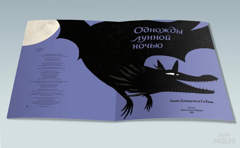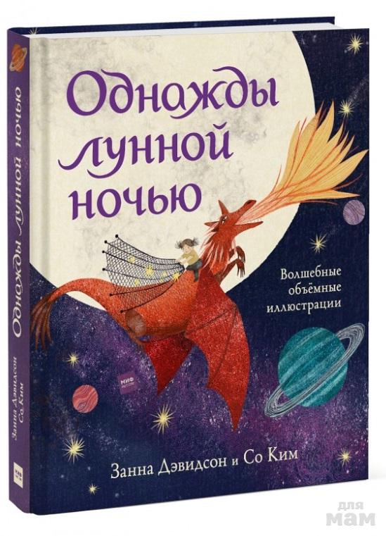 Внутри - стихотворение, написанное от лица девочки, которая рассказывает о своих приключениях, случившихся однажды во время волшебной лунной ночи. Мы понимаем, что ей снится и путешествие на Луну, и полет на драконе, и плавание на маленькой лодке среди бушующего моря. Но девочка верит, что все это по-настоящему. Ей помогает огромный, но не страшный дракон, она летает на нем, и он спасает ее от бури и чудовищ. Но когда она просыпается, рядом с ней оказывается малютка-дракон, пусть и игрушечный. Автор как бы оставляет финал открытым - возможно, в лунную ночь любимая игрушка стала настоящей и защитила свою хозяйку? Или ей все же это приснилось?