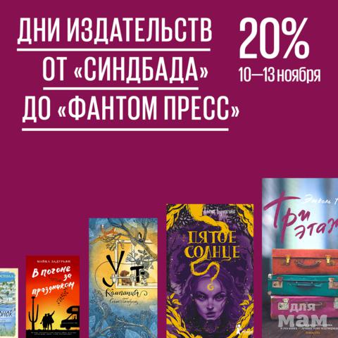 ЛАБИРИНТДни издательств. От «Синдбада» до «Фантом Пресс»Классическая и современная проза, книги и комиксы для детей и подростков — найдите то, что понравится именно вам!С 10.11.2019 по 13.11.2019