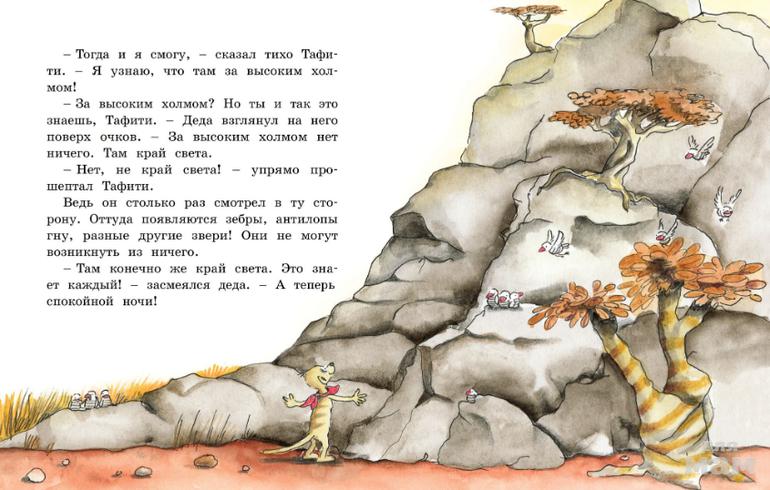 В сердце Африки, в необъятной саванне, живёт маленький, но очень любознательный и отважный сурикат Тафити, у которого была заветная мечта. Больше всего на свете ему хотелось узнать, что скрывается за холмом, виднеющимся на горизонте. В одно прекрасное утро, не страшась трудностей, Тафити отправляется в путешествие. Чтобы раскрыть тайну холма, ему придётся не только преодолеть самые разные препятствия, но и встретиться с удивительными, а порой и опасными обитателями саванны.