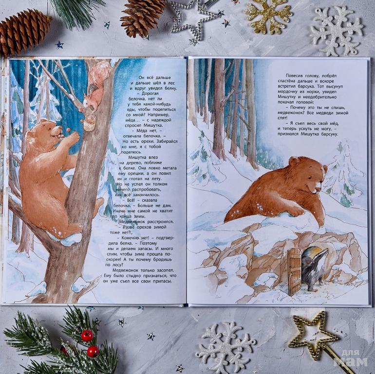 Очень трудно заснуть, когда хочется есть! И вот голодный Мишутка, вместо того чтобы спать в своей берлоге, отправился на поиски мёда и переполошил обитателей зимнего леса. И только мама-медведица смогла накормить, успокоить и уложить спать своего сыночка, а заодно и других лесных зверушек, потому что она - Лучшая мама на свете!