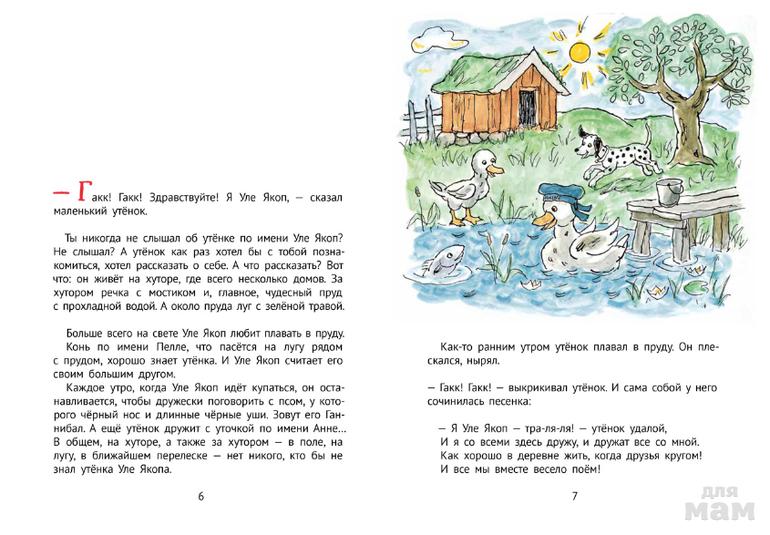 Утёнок Уле Якоп живёт в деревне, обожает купаться и распевать песни. А ещё он очень любопытный — и однажды решает отправиться посмотреть на город. Какие опасности и приключения ожидают там маленького утёнка?