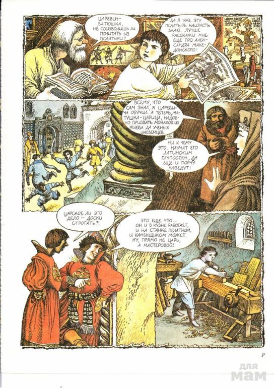 История, графические романы, комиксы. Для взрослых. Авторы обратились к одной из самых интригующих страниц отечественной истории - эпохе правления Петра I - в жанре комикса. Комикс предполагает приоритет изображения перед словом, но в этом случае авторы добились их органического единства. Рисунки И. Вышинского, полные достоверных исторических деталей, выполненные с безупречным мастерством, дополнены столь же точными и остроумными текстами Б. Каражаева. В шести главах книги читатель найдет лаконичное изложение ключевых эпизодов Петровской эпохи, встретит множество исторических персонажей, каждый из которых предстает здесь не в качестве статиста, а как полноценный образ со своим характером и судьбой. Все это делает издание не только увлекательным. Но и познавательным чтением.