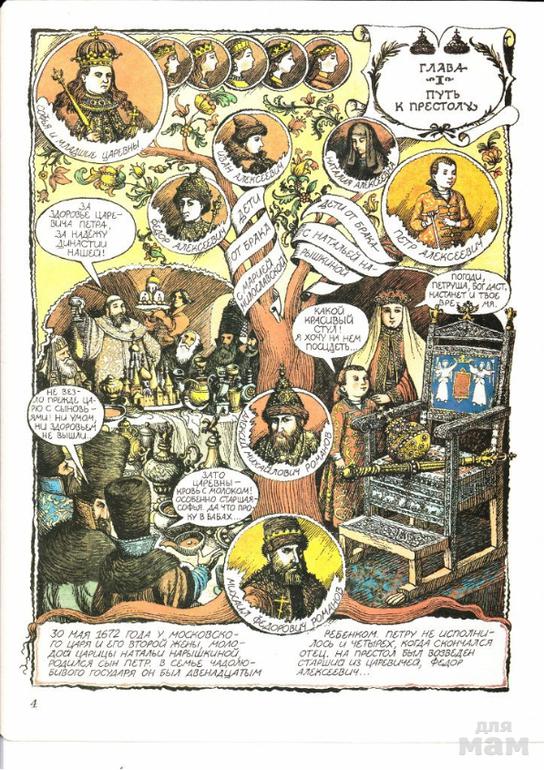Авторы обратились к одной из самых интригующих страниц отечественной истории — эпохе правления Петра I — в жанре комикса. Комикс предполагает приоритет изображения перед словом, но в этом случае авторы добились их органического единства. Рисунки Вышинского, полные достоверных исторических деталей, выполненные с безупречным мастерством, дополнены столь же точными и остроумными текстами Караджева. В шести главах книги читатель найдет лаконичное изложение ключевых эпизодов Петровской эпохи, встретит множество исторических персонажей, каждый из которых предстает здесь не в качестве статиста, а как полноценный образ со своим характером и судьбой.