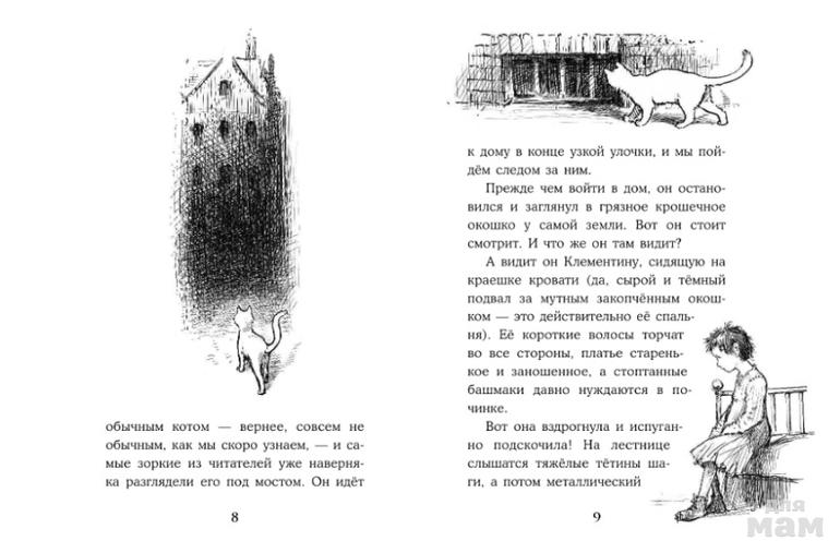 Это история о самой обыкновенной сироте, живущей в огромном мрачном городе. Из друзей у нее только кот — вот, видите, они сидят на крыше? А еще у Клементины есть дядя и тетя, очень злые и плохие люди. И, как положено во всякой сказке — а это именно сказка, не сомневайтесь, — дядя и тетя Клементины постоянно попадают в нелепые и смешные ситуации, потому что злобность и мелочность до добра не доводят. А еще у Клементины есть тайна. Это волшебное место. Оно раньше ей снилось, а теперь девочка нашла его… наяву!