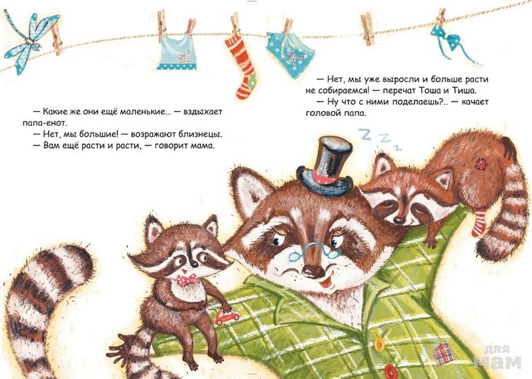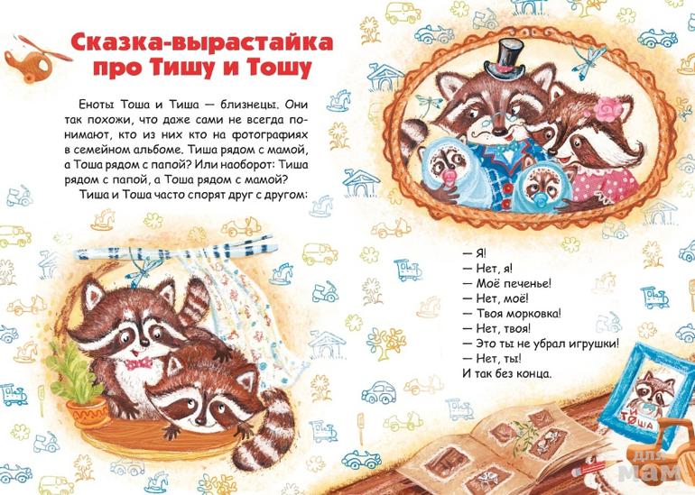 Герои сказки-вырастайки "Про Тишу и Тошу" научат детей сотрудничать и помогать друг другу. Ростомер позволит измерить рост не только в обычных сантиметрах, но и в енотах. Дневник поможет сохранить воспоминания о самых важных событиях в жизни ребёнка. Понаблюдать за изменением его вкусов и желаний с возрастом. И даже разобраться в выборе будущей профессии.