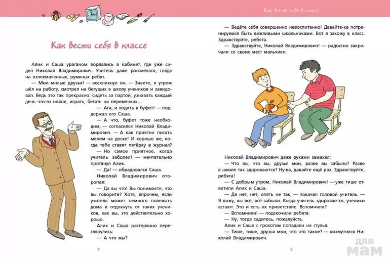 Передача "Радионяня" впервые прозвучала в 1972 году и вы ходила в эфир почти двадцать лет. Авторы и ведущие проводили весёлые занятия по самым разным предметам, собирали и пересказывали смешные случаи на уроках, приглашали актёров и писателей, разыгрывали сценки. Каждый выпуск "Радионяни" слушали миллионы детей и легко запоминали правила грамматики, математики, хорошего поведения благодаря шуткам ведущих и их забавным песенкам. В этой книге собраны уроки по правилам хорошего тона, которые проводят мальчики Саша и Алик и их учитель Николай Владимирович. Они не только научат ребят разбираться в деталях этикета, но и развеселят своими выдумками.