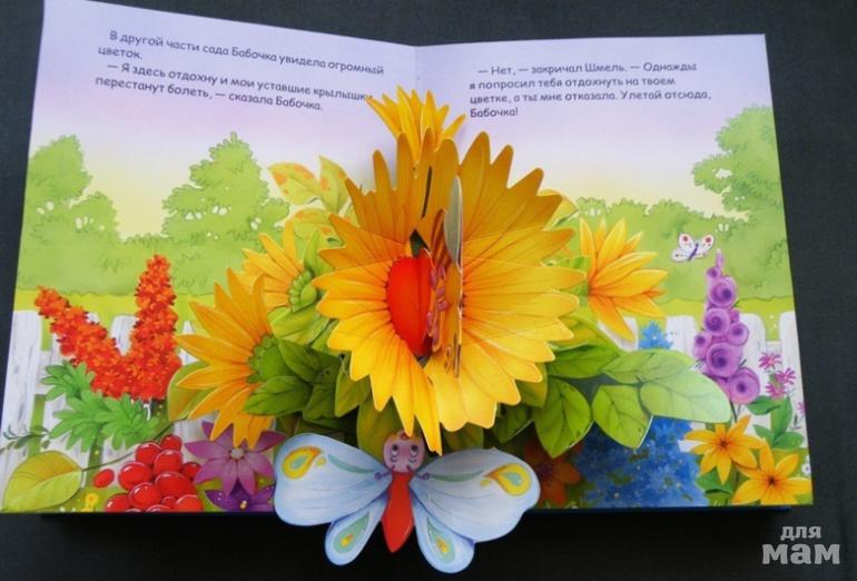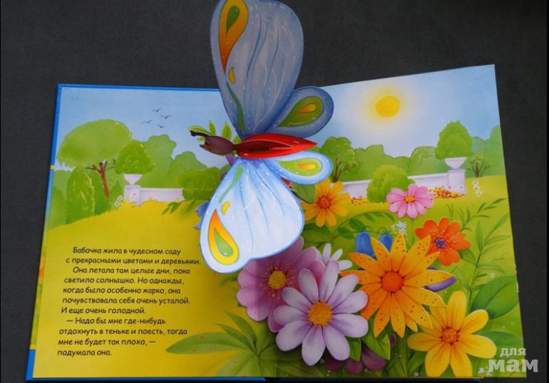 В этой книжке, как в театре, оживет чудесная история о маленькой бабочке. 6 объемных картин-панорам помогут малышу представить, как бабочка отправилась путешествовать по саду, кого она встретила и как научилась всем делиться.
