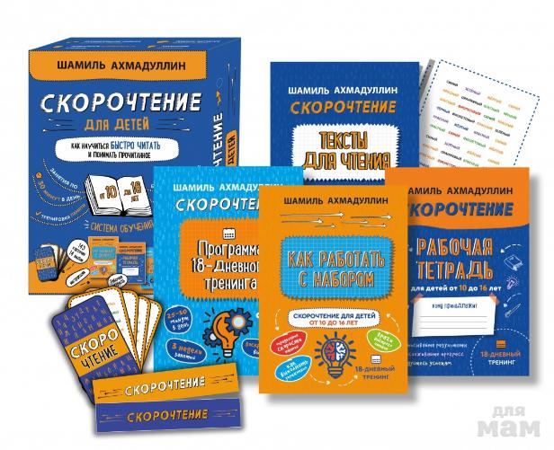 - 4 методических пособия: "Как работать с набором", "Рабочая тетрадь", "Программа 18-дневного тренинга", "Тексты для чтения".