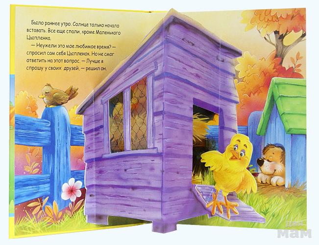 В этой книжке, как в театре, оживет чудесная история о маленьком цыпленке. 6 объемных картин-панорам помогут малышу представить, как цыпленок решил узнать - что же он любит больше всего и кто ему помог в этом разобраться.