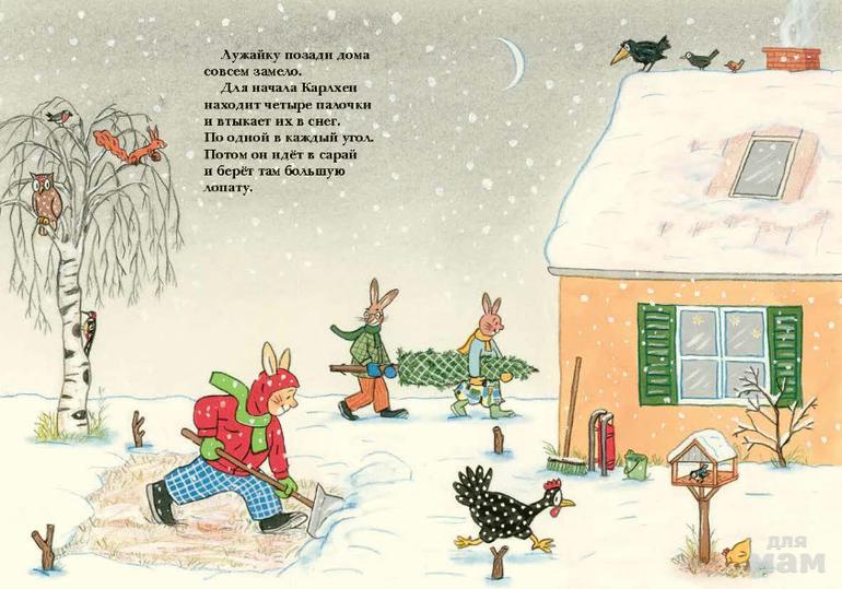 «С Новым годом, Карлхен!» – уже восьмая по счету книга на картоне о зайчонке Карлхене и его семье.