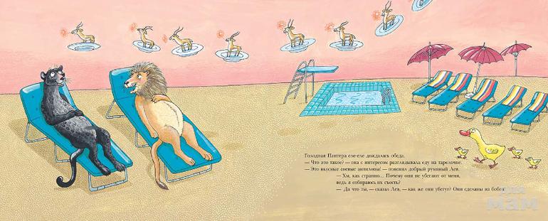 Пантера жила в Африке и обожала охотиться. А еще она была очень любопытна и однажды оказалась в чудесном саду, где звери живут в мире и согласии и не едят друг друга. Однако такая райская жизнь пришлась охотнице не по вкусу, так же, как и соевые антилопы. И вот из сада один за другим начали исчезать звери – белка, заяц, зебра и другие. И в то же самое время с пантерой стали происходить странные превращения: то пушистый хвост вырос, то длинные уши, то по всему телу пошли черно-белые полоски… Звери почуяли неладное и стали задавать пантере вопросы. Но до поры до времени она всему находила объяснение. Пока не съела директора зоосада и не очутилась в его шкуре.