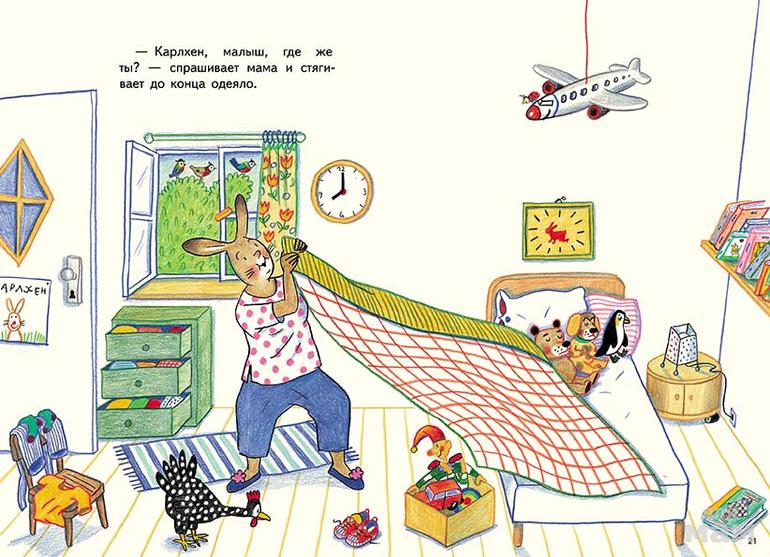 «Карлхен, папа, мама и бабушка Никкель» – сборник из пяти добрых семейных историй. Маленький зайчик по имени Карлхен живёт так же, как и все дети. Он начинает свой день с маминой улыбки, а по вечерам не очень любит укладываться спать. По субботам он ходит с папой в магазин, а летом приезжает в гости к бабушке в деревню. У Карлхена есть младшая сестрёнка Клара, есть кузина Кэти, есть любимые игрушки и друзья.