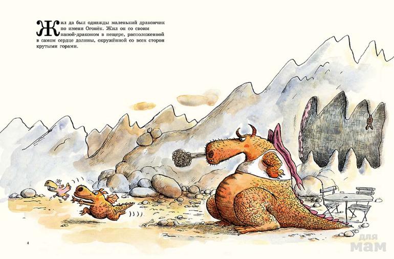 Трогательная трилогия французского писателя Александра Лакруа, остроумно проиллюстрированная Ронаном Баделем – одна из немногих детских книг (не только на российском, но и мировом книжном рынке), сюжет которых строится вокруг взаимоотношений ребенка и отца. Чаще «главным» родителем малыша в детской литературе выступает мама, что, безусловно, важно. Но папы все же несправедливо отодвинуты на второй план. Что ж, истории о папе и сыне драконах удачно компенсируют этот досадный перекос!