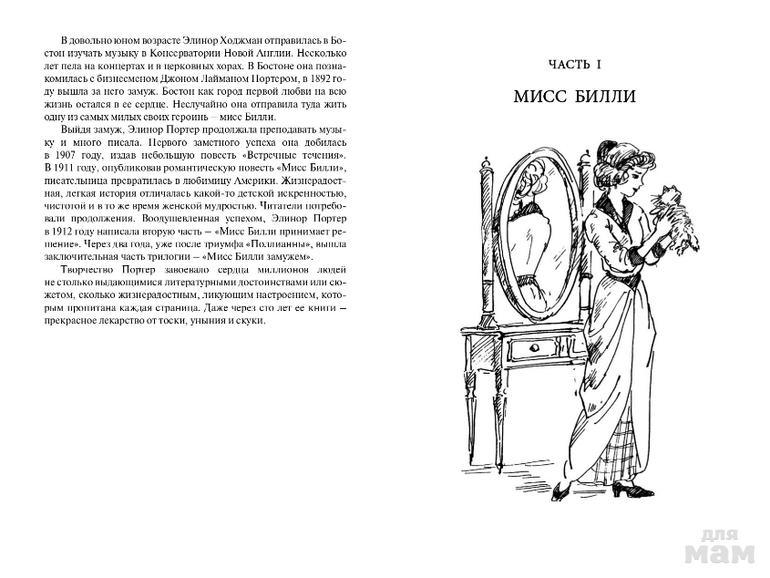 Сентиментальная трилогия американской писательницы Элинор Портер (1868–1920), автора знаменитой «Поллианны», рассказывает о чудесной девушке с добрым сердцем и открытым характером, готовой помогать всем на свете, не жалея времени и сил. Странным именем она обязана отцу – тот назвал девочку в честь своего лучшего друга Уильяма (уменьшительное – Билли). «Мужское» имя нередко ставит окружающих в тупик и становится причиной ряда нелепых ситуаций.