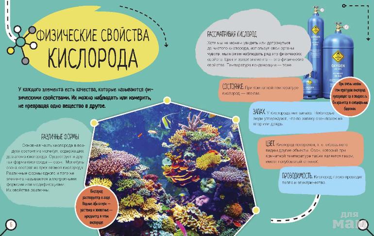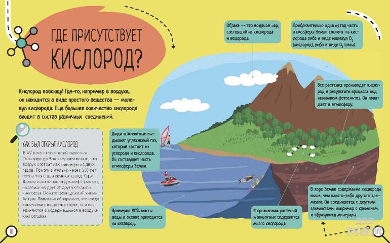 "Кислород". Все живые существа — от микроскопических бактерий до голубых китов — состоят в основном из шести элементов: водорода, углерода, азота, кислорода, фосфора и серы. Эти химические элементы являются строительными блоками жизни на Земле. Каждая книга серии доступным языком рассказывает историю одного из этих элементов, объясняя, что это такое, как он был обнаружен, где присутствует, как взаимодействует с другими элементами и что делает его важным для жизненных процессов. В конце каждой книги юных читателей ждет тест для проверки усвоенного материала.