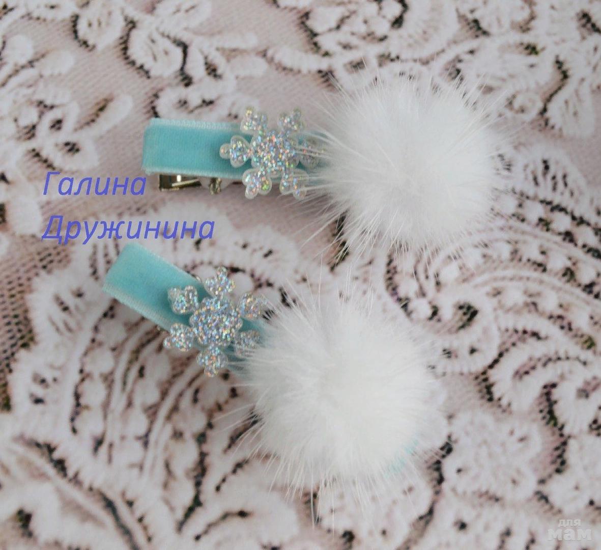 Беленькие бантики в размере 6,5 см. Мех на бархате.