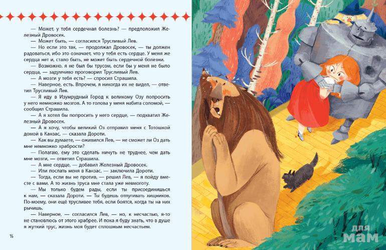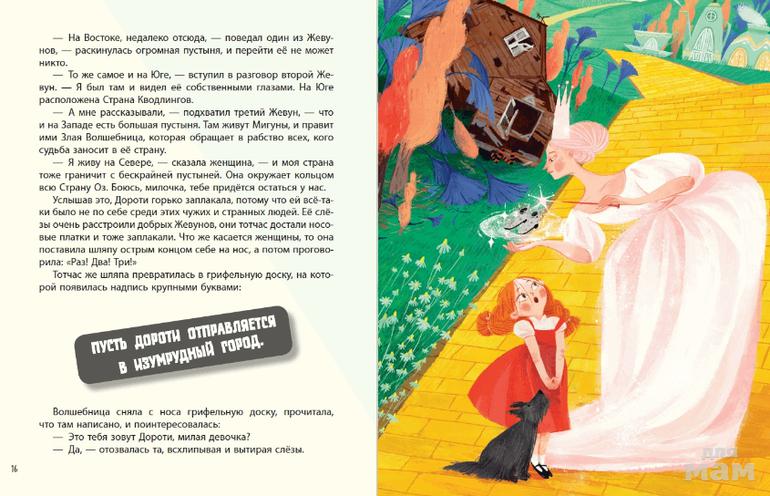 Что увидела Дороти, когда ураган забросил её домик в волшебную страну? Диковинные, словно вырезанные из картона деревья, покрытые листвой самых разных оттенков. Уходящую за горизонт жёлтую ленту - дорогу из кирпича. Дома, то похожие на большой чайный сервиз, то возвышающиеся небоскрёбами над стенами Изумрудного города... "А не похожа ли волшебная страна Оз на театр?", - подумали художники La Studio и рассказали известную сказку американца Л.Ф. Баума по-своему. Переворачиваются страницы, и герои разыгрывают перед читателями целое представление: Дороти путешествует по волшебной стране, находит друзей, побеждает врагов… И наконец, выдержав все испытания, она щёлкнет каблучками серебряных туфелек - и вернётся домой.